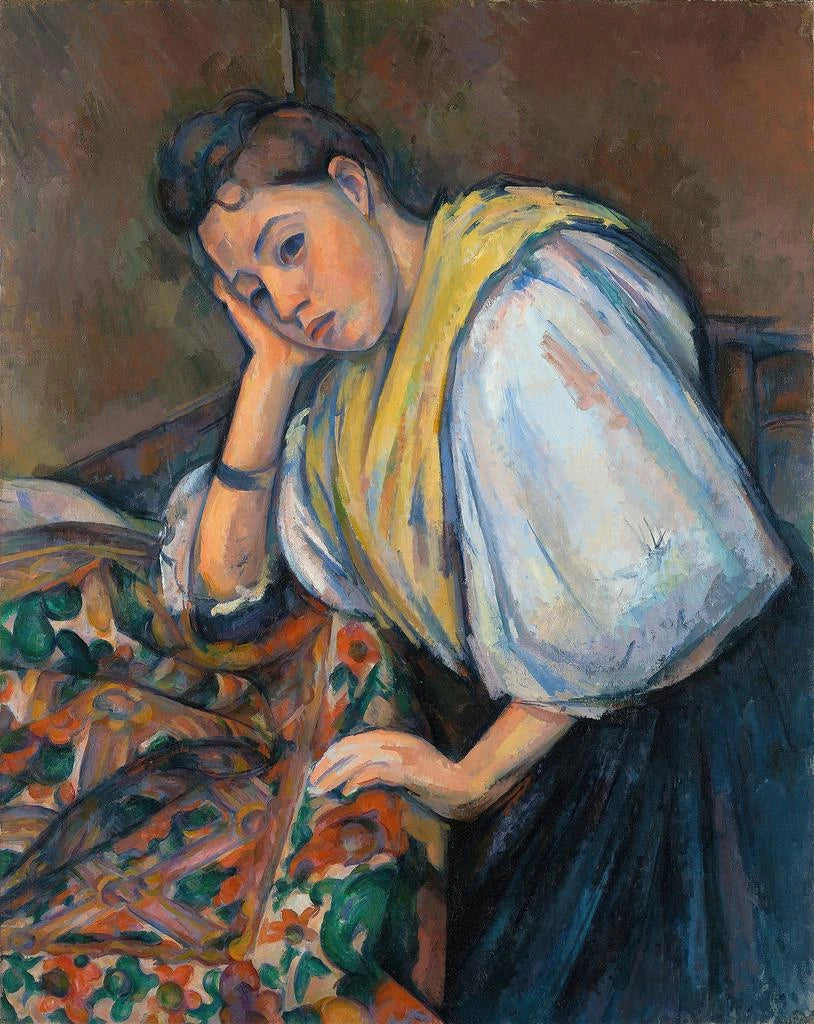 Ung italiensk kvinna vid ett bord - Paul Cézanne