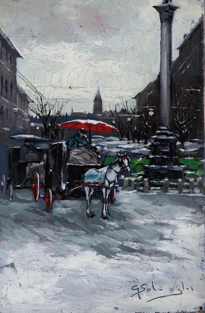 Målning av stadsbild med vagn - Giuseppe Solenghi | Konsttryck