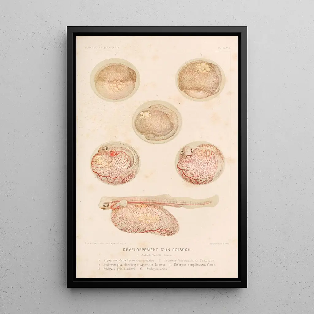 Utveckling av en fisk: en djupdykning i den vattenlevande världen "Utveckling av en fisk" av Alfred Frödl tar oss med till de marina djupen, där livet under vattnet avslöjar sig med en livfull intensitet. Tavlan, rik på färger och detaljer, lyfter fram de delikata nyanserna i fjällen och den flytande rörelsen i vattnet. Frödl använder en blandad teknik som kombinerar akvarell och teckning, vilket skapar en atmosfär som är både dynamisk och lugn. Varje element i kompositionen verkar fånga själva essensen av det marina livet, och bjuder in betraktaren att utforska mysterierna i denna fascinerande miljö. Alfred Frödl: en konstnär vid skärningspunkten mellan konst och vetenskap Alfred Frödl, verksam under 1900-talet, är en konstnär vars arbete utmärks av en naturalistisk ansats. Påverkad av de vetenskapliga upptäckter som gjordes under hans tid, lyckades han förena konst och biologi för att skapa verk som vittnar om skönheten och komplexiteten i den naturliga världen. Hans passion för att observera vattenlevande arter har närt hans inspiration, vilket möjliggjorde för honom att utveckla en unik stil som kombinerar precision och känslighet. Frödl har lämnat ett varaktigt arv, och hans verk fortsätter att inspirera dem som är intresserade av naturen och konsten. En dekorativ tillgång med många fördelar Konsttrycket "Utveckling av en fisk" är ett dekorativt föremål som tillför en touch av elegans till vilket utrymme som helst, vare sig det är i ett vardagsrum, ett kontor eller ett sovrum. Dess utskriftskvalitet och trohet mot originaldetaljer gör det till ett perfekt val för konst- och marinbiologientusiaster. Den estetiska dragningskraften hos detta konsttryck ligger i dess förmåga att framkalla oceanernas djupes lugn, och förvandla ditt hem till ett fristed av fred. Genom att integrera detta konsttryck i din inredning berikar du ditt utrymme med ett verk som stimulerar reflektion och förundran.