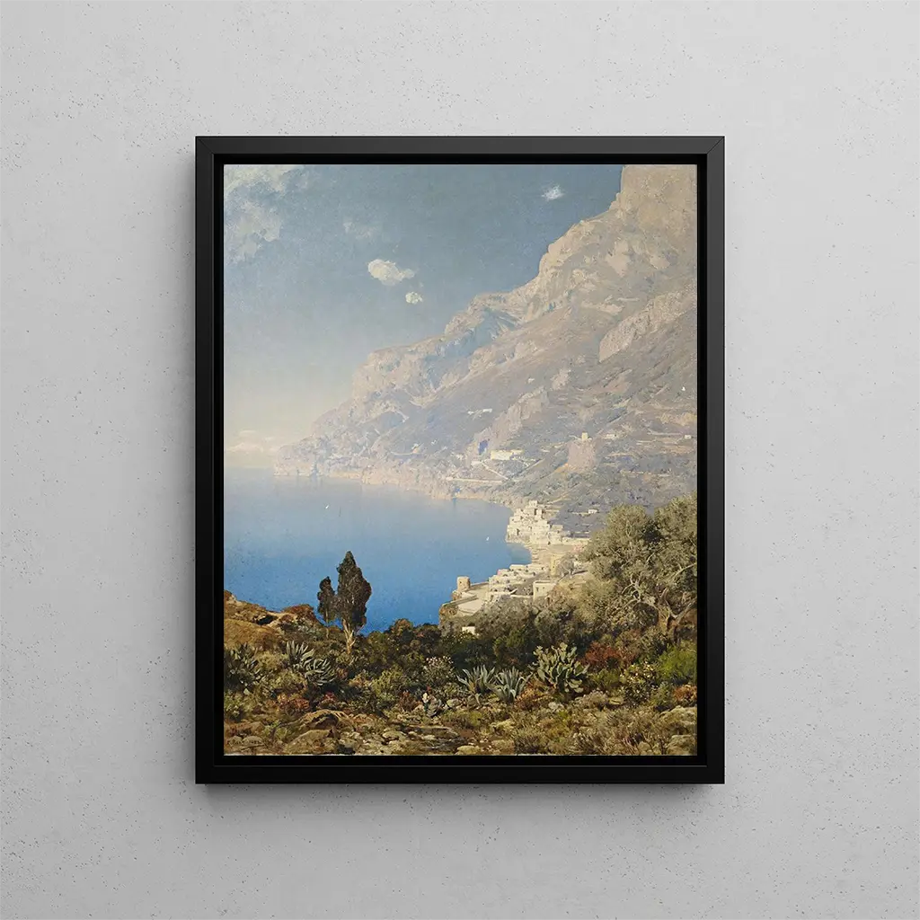 Att betrakta konsttrycket Côte près d'Amalfi - Edmund Berninger, förflyttar oss omedelbart till de förtrollande kusterna i Medelhavet. Detta verk, både livfullt och lugnande, framkallar den tidlösa skönheten hos kustlandskapen, där havet och landet vävs samman i en harmonisk dans. Berninger, med sin obestridliga talang, bjuder in oss att utforska nyanserna av ljuset, reflektionerna i vattnet och färgernas rikedom som utgör detta konsttryck. Konstnären lyckas fånga en atmosfär som är både lugn och levande, och fördjupar oss i ett suspendert ögonblick, där tiden tycks stanna för att ge plats åt eftertanke.