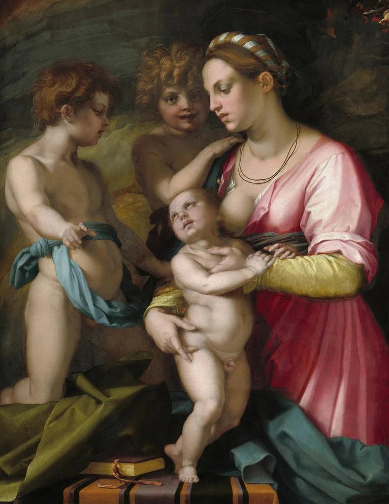 Konsttrycket "Charité" av Andrea del Sarto är ett ikoniskt verk som förkroppsligar själva essensen av den italienska renässansen. Genom denna gripande skildring lyckas konstnären framkalla en slående emotionell djup, inbjudande betraktaren att dyka in i en värld där medkänsla och mänsklighet möts. Scenen, fylld av ömhet, avbildar en kvinnlig figur, symbol för charité, omgiven av barn i ett skyddande och välvilligt gest. Detta verk, mycket mer än en enkel illustration, blir en verklig reflektionsbärare över människans natur och de värderingar som förenar oss.