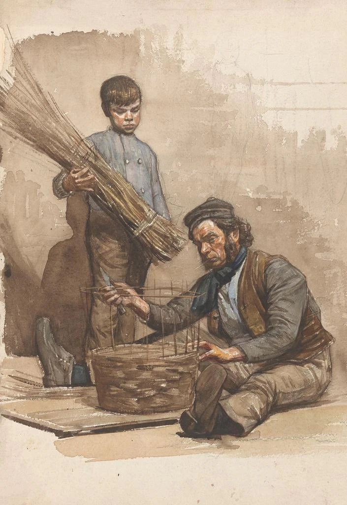 Konsttrycket Vannier sittande med en liten pojke stående av Jan Veth fångar en rörande scen av samhörighet mellan två generationer. Vanniern, fokuserad på sitt arbete, förmedlar sitt hantverk till den unge pojken, vars oskuld och nyfikenhet lyser upp kompositionen. De mjuka och naturliga färgerna, dominerade av jord- och gröntoner, framkallar en lugn och varm atmosfär. Veths teknik, som blandar realism och känslighet, gör det möjligt att känna den påtagliga känslan mellan figurerna, vilket gör detta konsttryck särskilt tilltalande och uttrycksfullt.