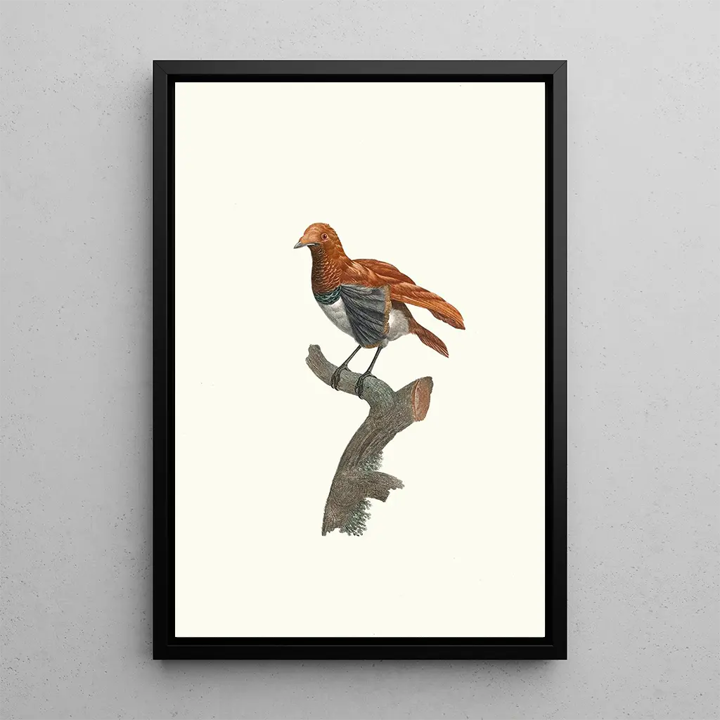 La konsttryck av Variété de Manucode av Jacques Barraband är en verklig hyllning till naturens skönhet. Denna duk, rik på detaljer, visar en fågel med glänsande fjädrar, blandande nyanser av grönt, blått och gult. Tekniken med akvarell, använd med noggrann precision, gör det möjligt att återge fjädrarnas lätthet och färgernas livfullhet. Atmosfären som avtecknar sig i detta verk är både glad och lugnande, inbjudande betraktaren att fördjupa sig i en tropisk värld där faunan avslöjar sig i all sin prakt.