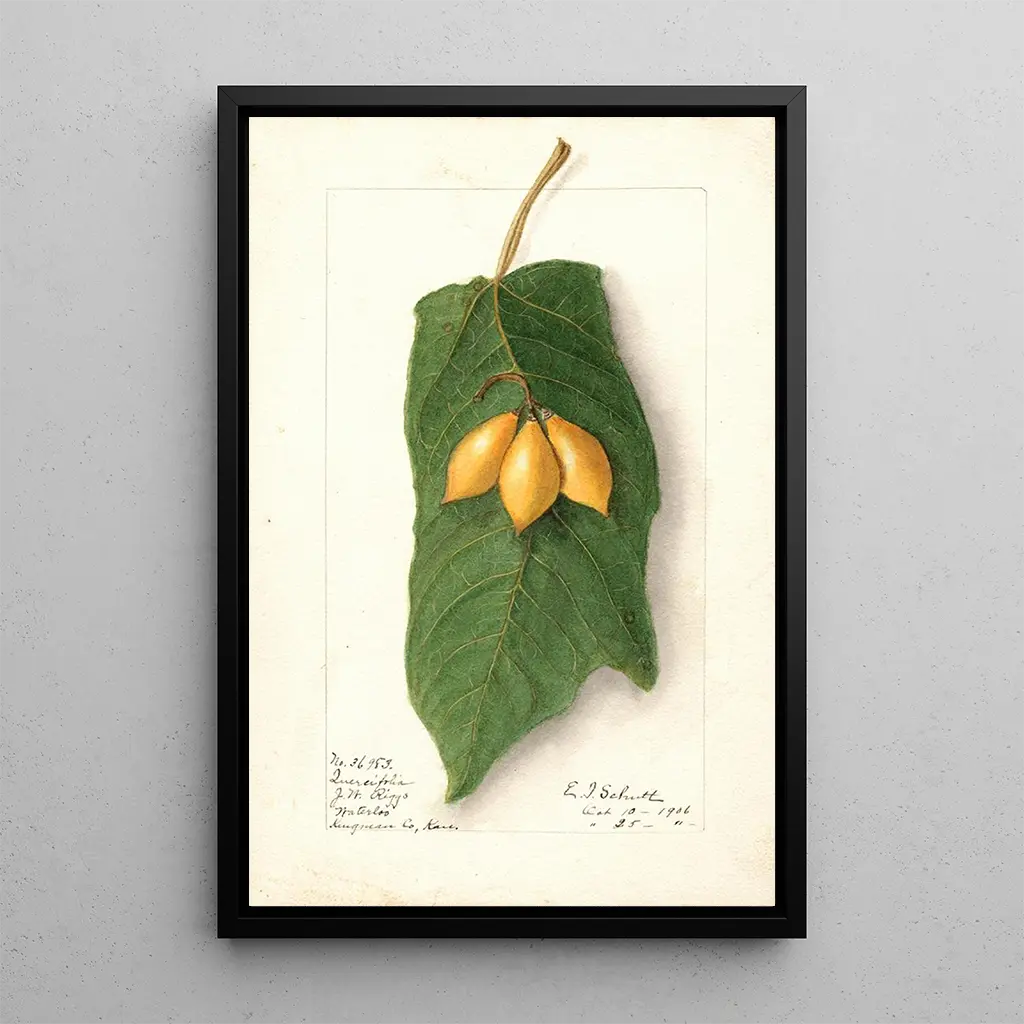 Konsttrycket Vasconcellea quercifolia av Ellen Isham Schutt framhäver den rika och mångfacetterade tropiska floran. De livfulla gröna nyanser, kompletterade med inslag av rött och gult, skapar en dynamisk komposition som fångar ögat. Akvarelltekniken gör det möjligt för konstnären att fånga bladens lätthet och finhet, samtidigt som den lyfter fram växtens unika struktur. Detta verk inbjuder till noggrann eftertanke och avslöjar naturens gömda skönhet och harmoni.