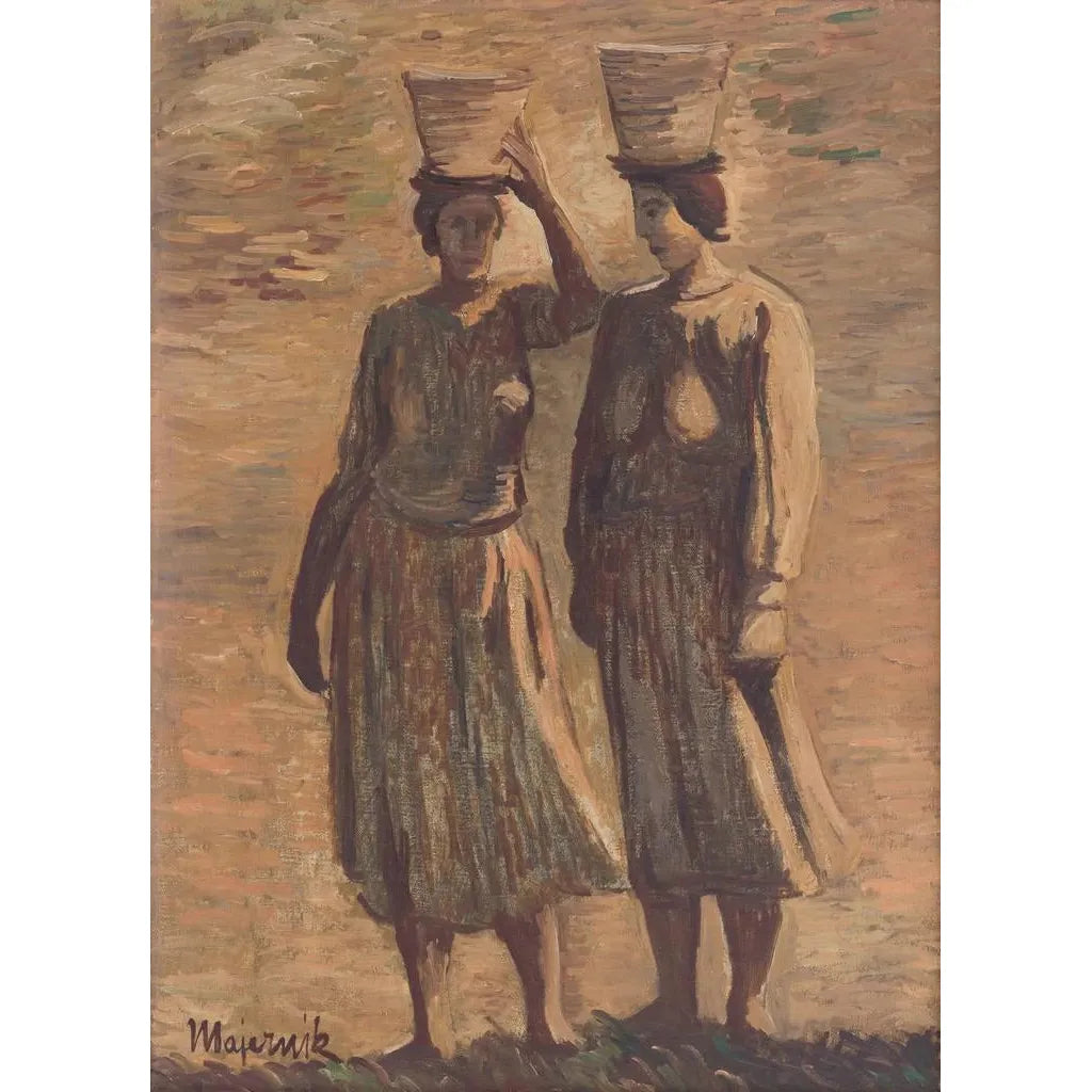 Cyprian Majernik, polsk konstnär verksam under 1900-talet, är känd för sina gripande skildringar av det rurala livet och folkliga traditioner. Påverkad av realismrörelsen, verkar han i en tid då konsten strävar efter att fånga den äkta erfarenheten av människors liv. Hans verk är ofta präglade av en social känslighet, som lyfter fram kvinnors viktiga roll i samhället. Genom "Porteuses d'eau" understryker Majernik naturens och de naturliga resursernas betydelse, samtidigt som han hyllar kvinnors styrka och motståndskraft i sin tid.