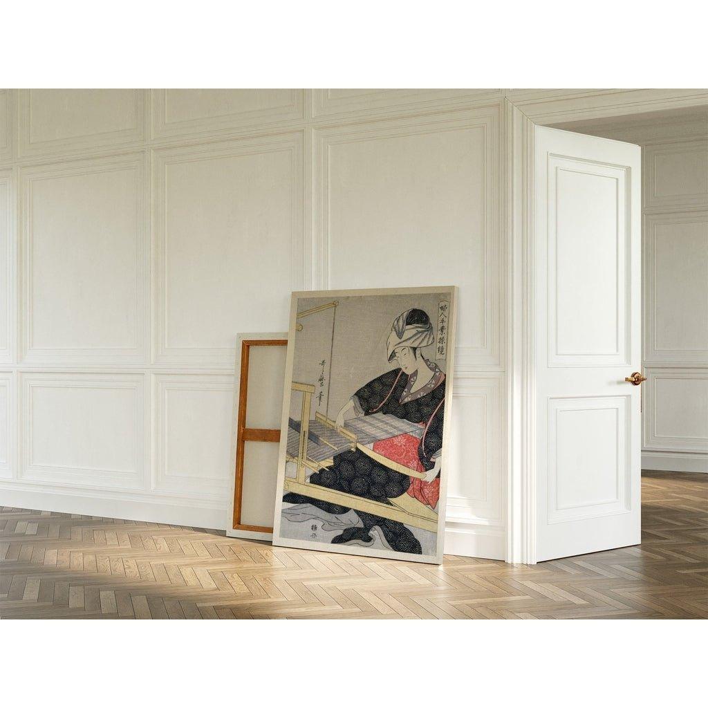 Målning Hata-ori - Tygvävning på ett vävstol - Kitagawa Utamaro | Konsttryck