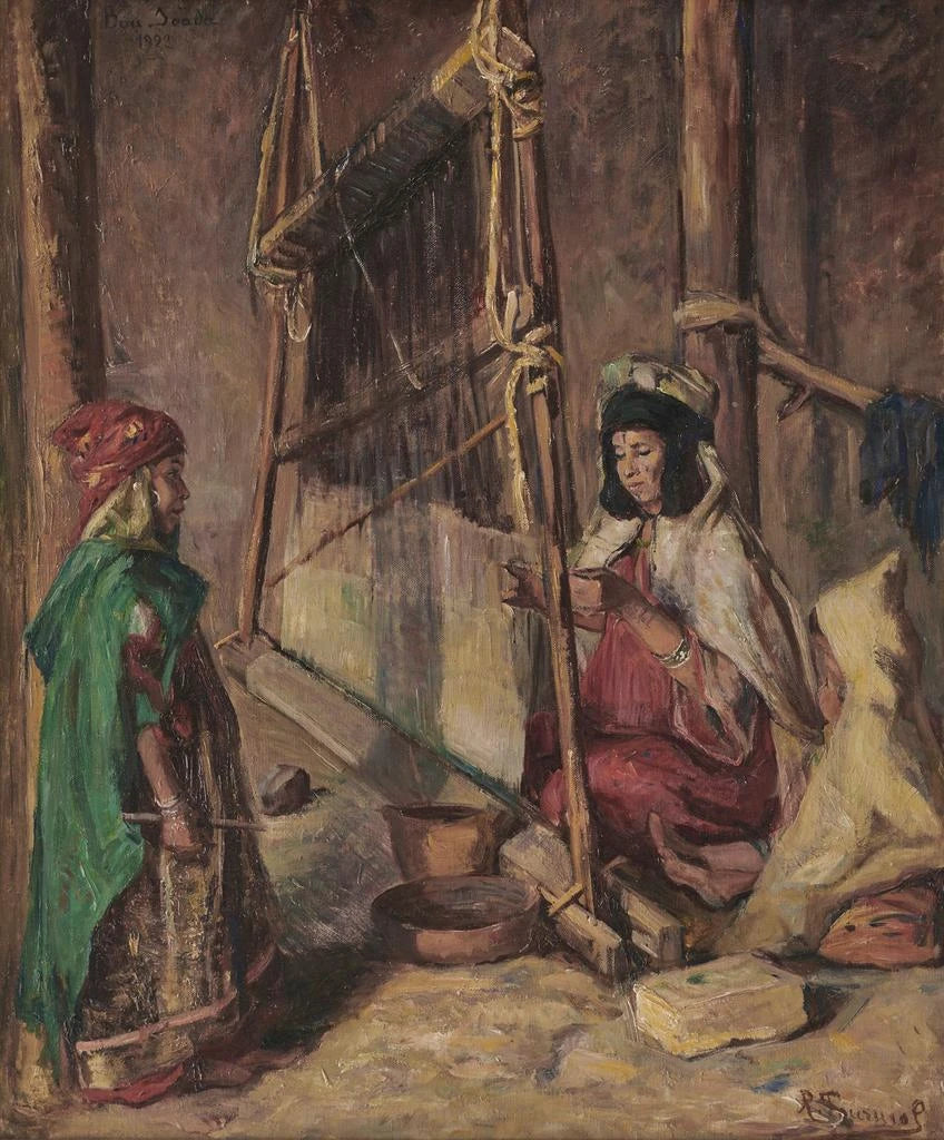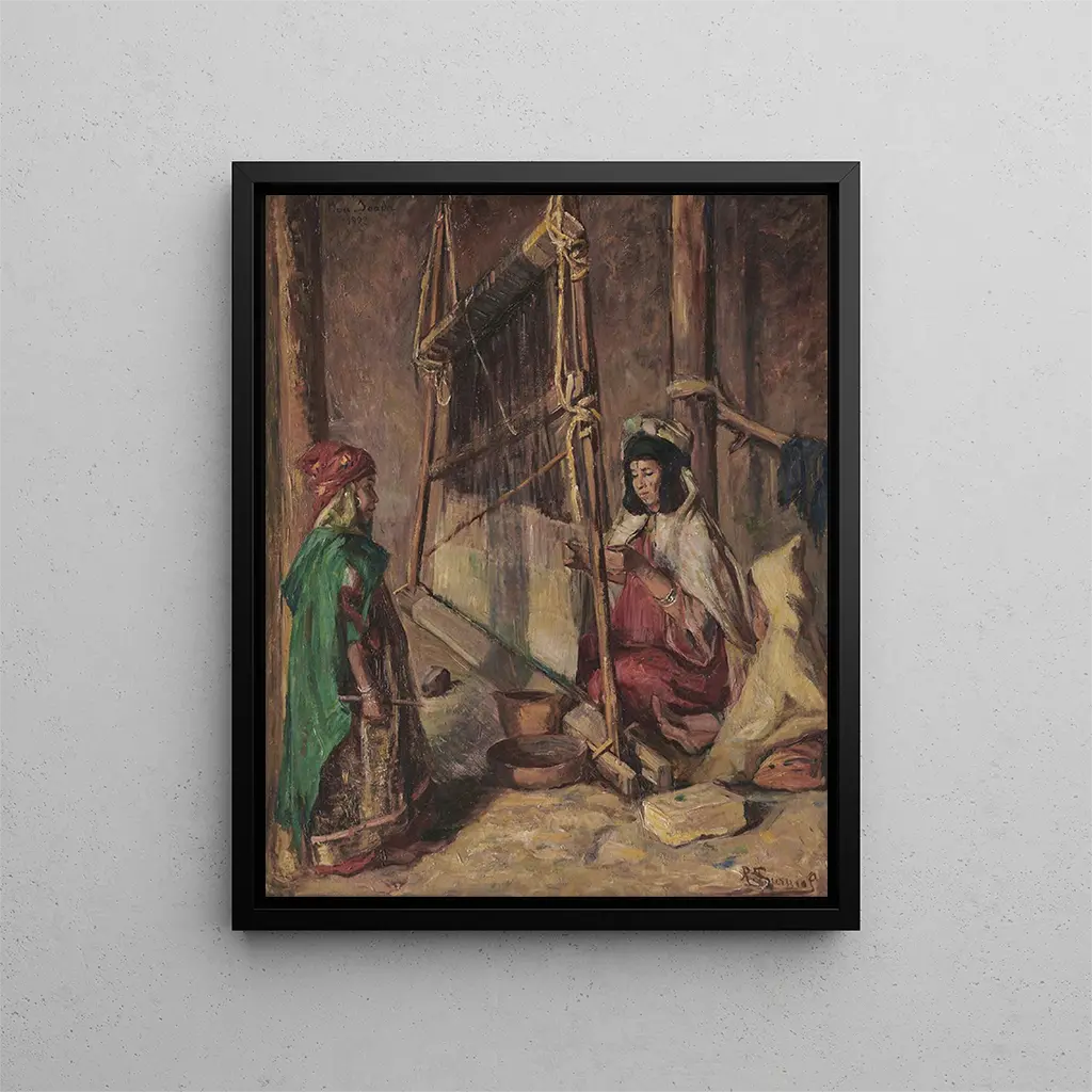 René Tourniol, fransk konstnär från 1900-talet, är känd för sina skildringar av vardagslivet och genrebilder. I 'Les fileuses, Bou Sada' fångar han ett ögonblick av hantverksarbete, som lyfter fram skönheten i den kreativa processen och vikten av tradition. De kvinnliga figurerna, engagerade i sitt arbete, avbildas med en känslighet som understryker deras styrka och beslutsamhet. Tourniol använder en palett av varma färger för att skapa en intim och välkomnande atmosfär, som väcker en djup koppling mellan människan och hennes omgivning. Detta konsttryck, trots att det är förankrat i en social verklighet, finner resonans i moderna interiörer som värdesätter äkthet och hantverksskicklighet. Utforska denna rika värld av historia och upptäck dess konsttryck på Artem Legrand.