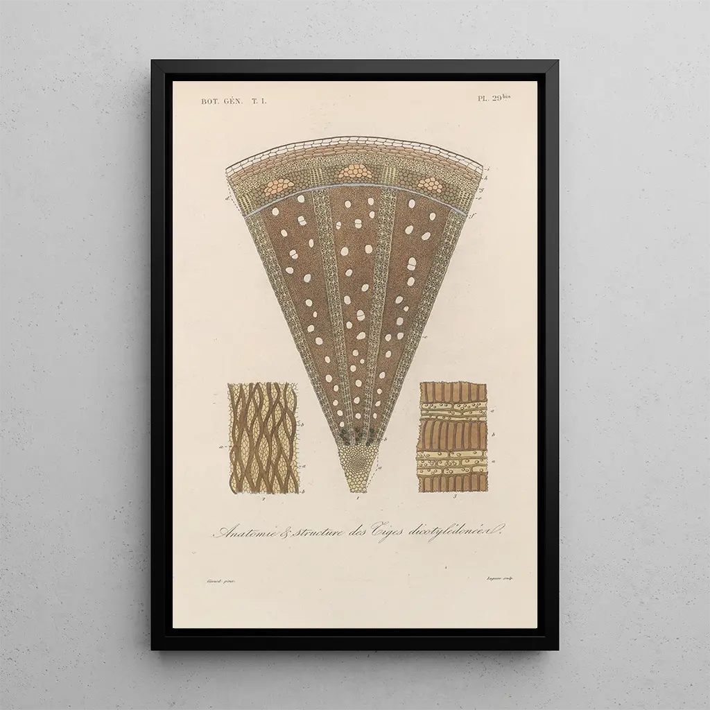 Konsttrycket av Traité de botanique générale Pl030 tar oss med till en fascinerande värld där varje växt är avbildad med slående noggrannhet. De delikata linjerna och de livfulla färgerna blandas för att skapa ett verk som hyllar växtlighetens rikedom. Atmosfären som utstrålar från denna målning är både lugnande och inspirerande, inbjudande till noggrann eftertanke av detaljerna. Varje element är noggrant observerat, hyllar naturens skönhet och komplexitet. Detta verk är en verklig inbjudan att utforska det växtliga riket.