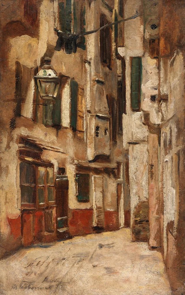 Max Liebermann, en ikonisk figur inom tysk impressionism, lyckades förena tradition och modernitet under hela sin karriär. Född i Berlin 1847, påverkades han av de stora franska impressionistiska mästarna, såsom Monet och Degas, samtidigt som han utvecklade sin egen unika stil. Liebermann var en pionjär inom skildringen av vardagsliv och landskap, särskilt genom sina vistelser i Holland och Italien. Hans verk "Ruelle vénitienne vers la droite" vittnar om hans kärlek till ljus och färg, samt hans önskan att fånga ögonblickets essens, vilket gör honom till en oumbärlig figur inom europeisk konst.