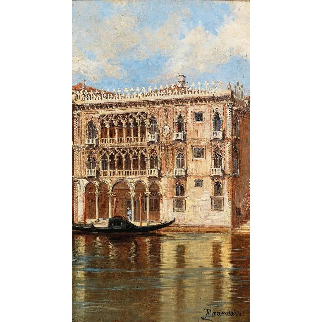 Antonietta Brandeis, konstnär från 1800-talet, är erkänd för sina venetianska landskap som fångar ljuset och själen i staden. Påverkad av de stora mästarna inom italiensk målarkonst, har hon utvecklat en unik stil, som förenar precision och känslighet. Hennes verk ingår i en period då landskapsmåleriet genomgår en förnyelse, och hon blir snabbt en viktig figur inom konstvärlden. Hennes målningar, inklusive "Venise Ca' d'Oro", vittnar om en djup beundran för venetiansk kultur och arkitektur, vilket gör henne till en ambassadör för denna tidlösa skönhet.