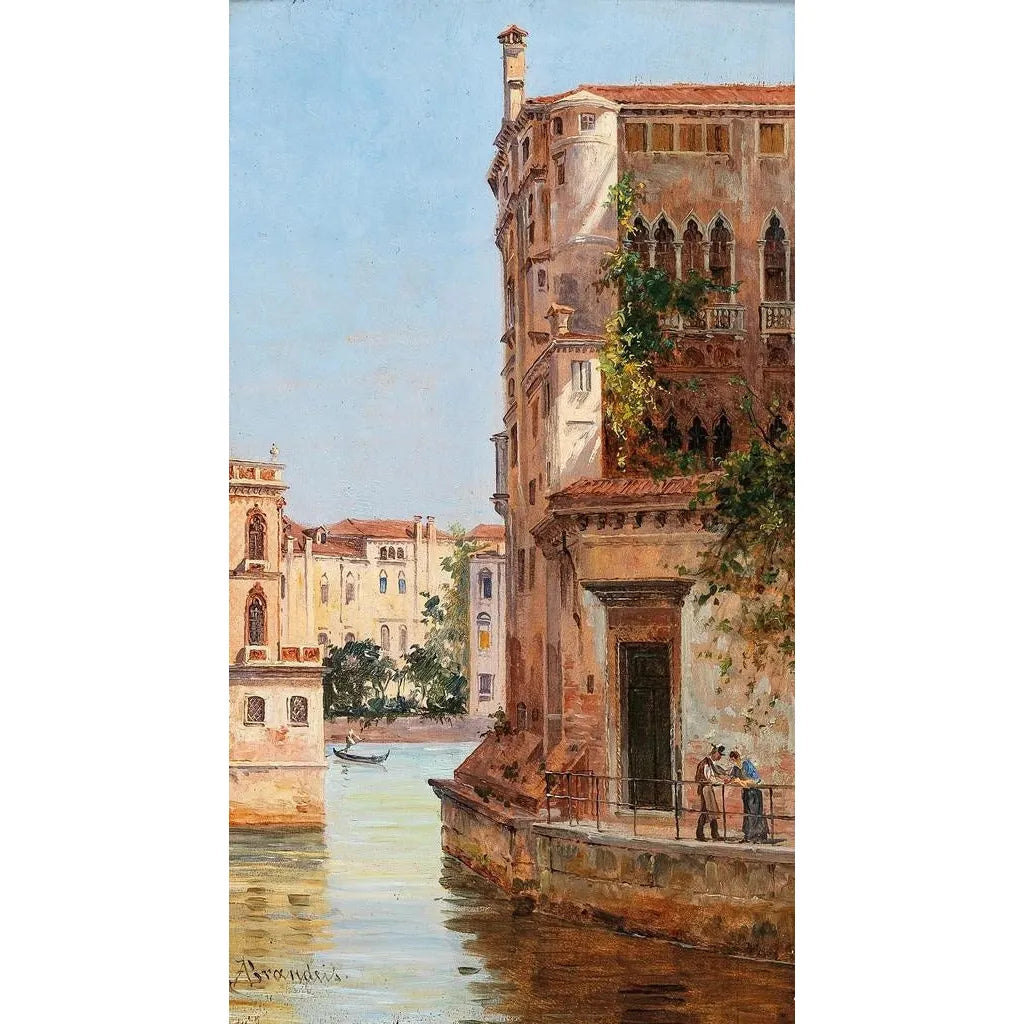 Antonietta Brandeis, född 1857, är en ikonisk figur inom venetiansk konst på 1800-talet. Påverkad av impressionismens rörelse, utmärker hon sig genom sin förmåga att fånga ljuset och atmosfären i stadslandskapen. Hennes karriär, präglad av utställningar över hela Europa, vittnar om vikten av hennes verk i den konstnärliga scenen under sin tid. Brandeis, ofta på resor genom Italien, lyckades fånga magin i Venedig, vilket gör hennes dukar till värdefulla vittnesmål om denna unika stad. Hennes stil, som är både realistisk och poetisk, fortsätter att inspirera konstälskare.