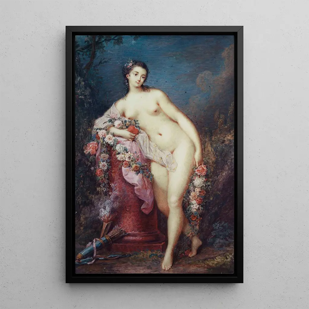 I detta fängslande konsttryck, står Venus, kärlekens och skönhetens gudinna, lutande mot en majestätisk kolonn, som förkroppsligar elegans och sensualitet. De varma och gyllene färgerna, blandade med nyanser av blått, skapar en atmosfär som är både lugnande och förtrollande. Jacques Charlier's teknik, som använder en blandning av realism och klassicism, ger liv åt denna mytologiska figur, nästan så att den känns påtaglig. Venus' avslappnade hållning, tillsammans med hennes mystiska blick, inbjuder betraktaren att beundra den tidlösa skönheten och att reflektera över teman som kärlek och begär.