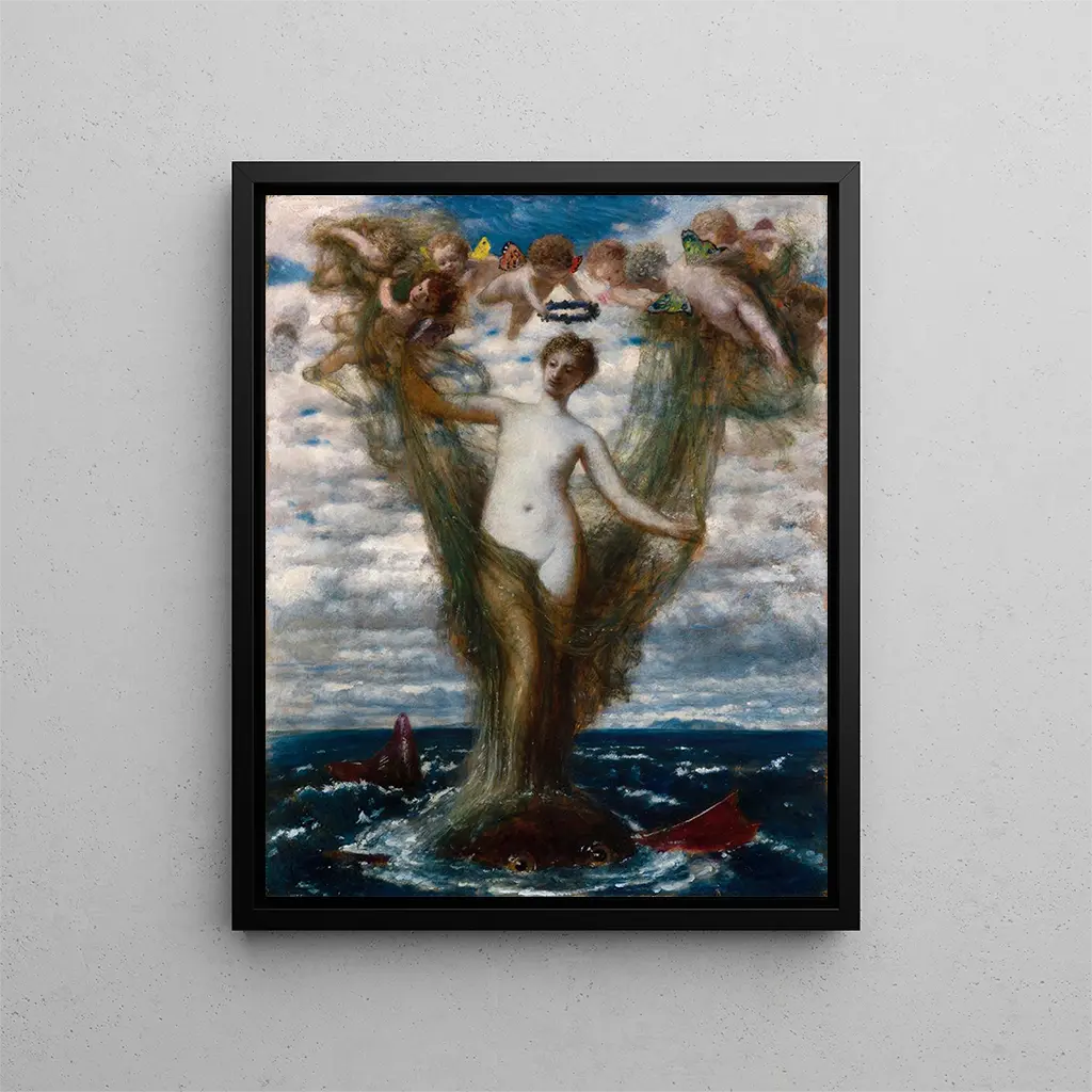 I det stora konsthistoriska panoramat lyckas vissa verk att överskrida sin tid för att nå det universella. "Vénus Anadyomène" av Arnold Böcklin är utan tvekan ett av dessa skapelser. Målad i slutet av 1800-talet, framkallar den den tidlösa skönheten och sensualiteten hos kärleksgudinnan, Vénus, som stiger ur vågorna. Denna framställning, både mytologisk och djupt mänsklig, fängslar betraktaren med sin elegans och poesi. Scenen, badad i ljus och delikata färger, inbjuder till en kontemplation som går bortom det enkla betraktandet. Den förkroppsligar en harmoni mellan natur och ande, och erbjuder ett fönster till konstnärens själ och till de estetiska strävandena i sin tid.