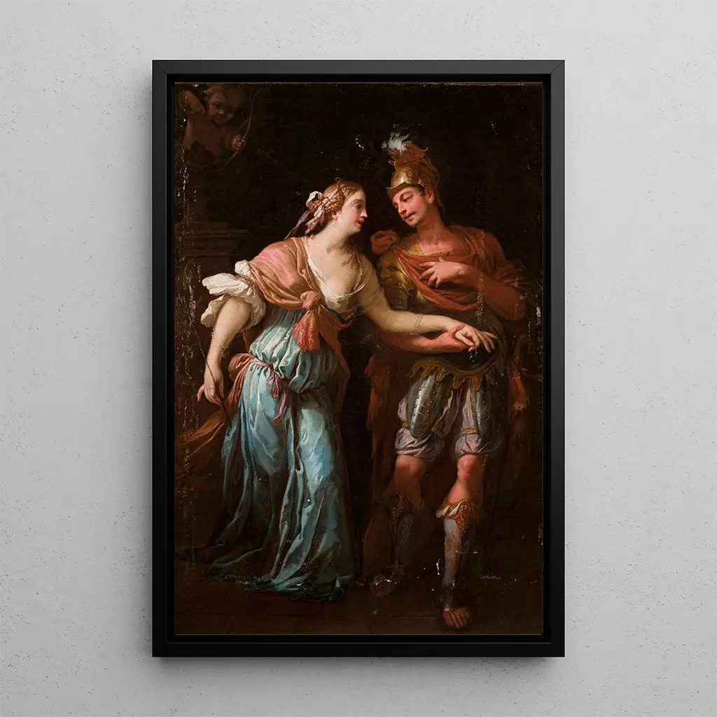 "Vénus och Mars" av Franciszek Smuglewicz är ett konsttryck som illustrerar dualiteten i mänskliga känslor genom mytologin. I denna målning är Vénus, kärlekens gudinna, och Mars, krigets gud, avbildade i en finstämd interaktion. De livfulla färgerna och kontrasten mellan varma och kalla nyanser skapar en fängslande dynamik, medan Smuglewicz teknik lyfter fram detaljerna i draperingarna och uttrycken. Denna komposition väcker en dialog mellan passion och konflikt, och bjuder in betraktaren att reflektera över mänskliga relationer.