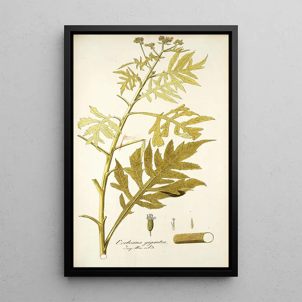En konsttryck av Verbesina gigantea fördjupar oss i en blomstrande värld av blommor, där varje detalj av växten är noggrant återgiven. De livfulla färgerna i detta konsttryck, från ljusgul till djupgrön, framkallar naturens rikedom och biologiska mångfald. Konstnärens teknik, som kombinerar botanisk precision med konstnärlig känsla, skapar en atmosfär som är både vetenskaplig och poetisk. Detta konsttryck inbjuder till eftertanke och avslöjar skönheten i naturens former och texturer, samtidigt som det hyllar färgpalettens harmoni.