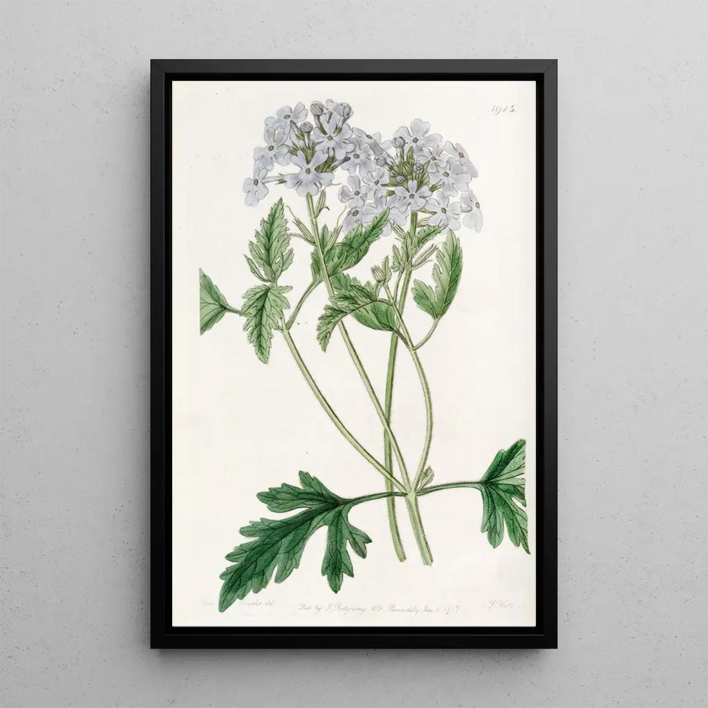 "Verveine lilas douce" av Sydenham Edwards är ett konsttryck som framkallar lätthet och grace hos växter. Canvastavlan utmärker sig med sina delikata lila nyanser, som harmoniskt blandas med mjuka gröna toner. Den noggranna avbildningen av blad och blommor, utförd med en förfinad graveringsteknik, skapar en mjuk och lugnande atmosfär. Varje detalj är omsorgsfullt framhävd, vilket gör att betraktaren kan känna den flyktiga skönheten i naturen. Detta konsttryck inbjuder till eftertanke och flykt, som en frisk bris i en ofta stormig värld.