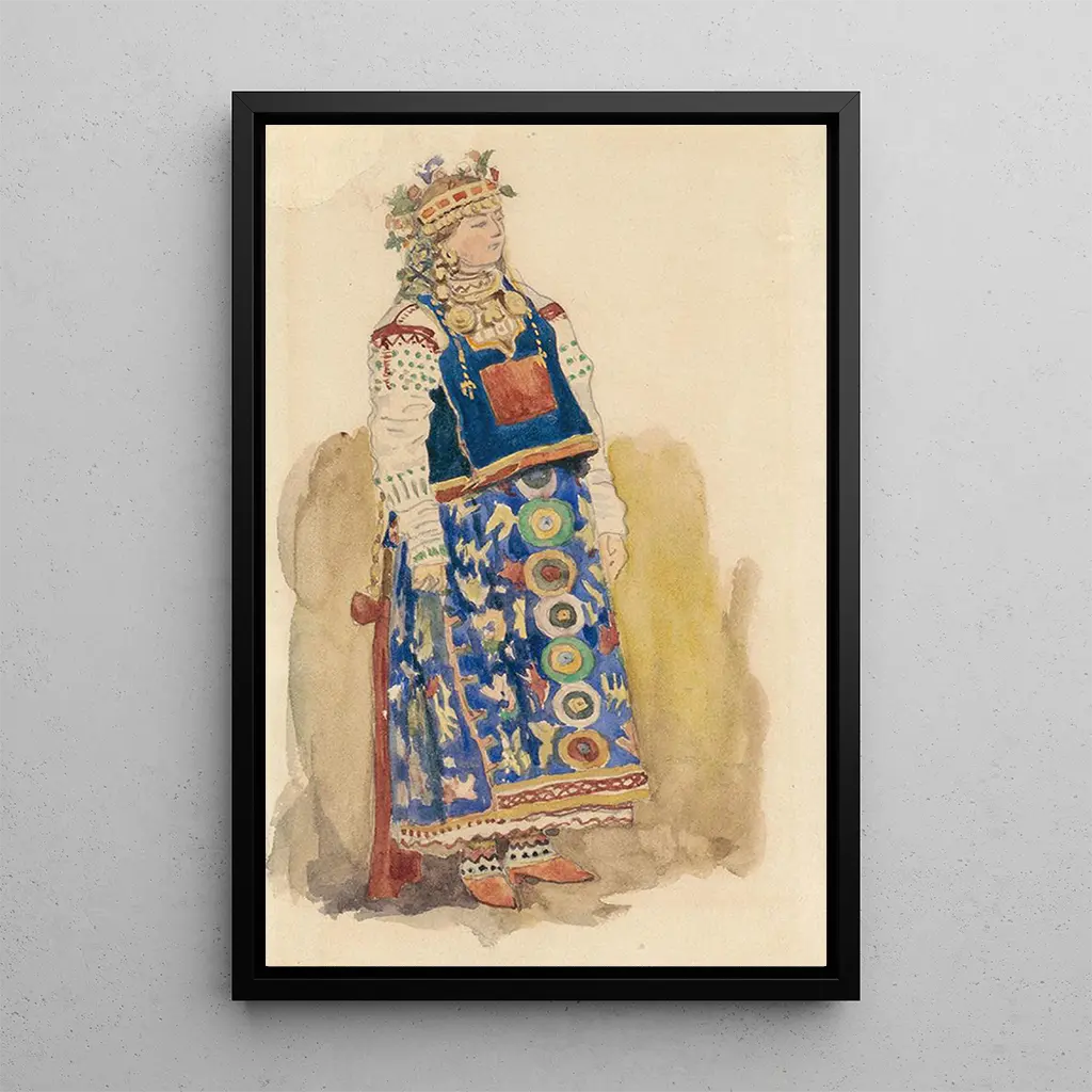 Victor Mikhailovich Vasnetsov, född 1848, är en av de mest inflytelserika konstnärerna inom den ryska symbolismrörelsen. Hans karriär inleddes i en tid då den ryska konsten strävade efter att etablera sig mot bakgrund av västerländska influenser. Vasnetsov hämtar inspiration från folksagor och slavisk mytologi, med målet att återupptäcka och hylla sitt lands kulturella identitet. Hans verk, ofta fyllda av mystik och poesi, vittnar om en ständig strävan efter harmoni mellan människan och naturen. Kupava illustrerar särskilt hans engagemang för traditionen samtidigt som den integrerar moderna inslag.