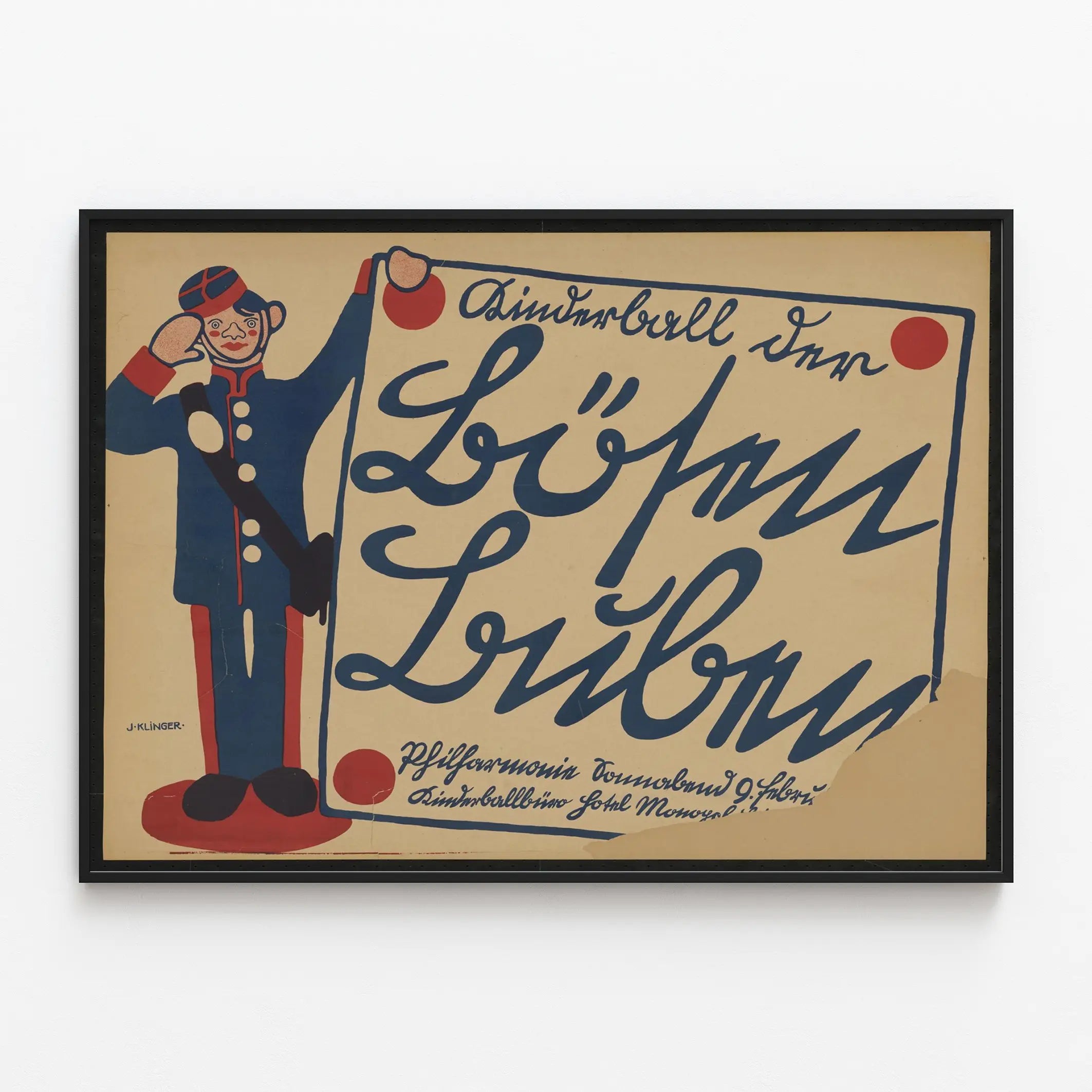 Vintageposter med symbolisk blå och röd soldat för Kinderball