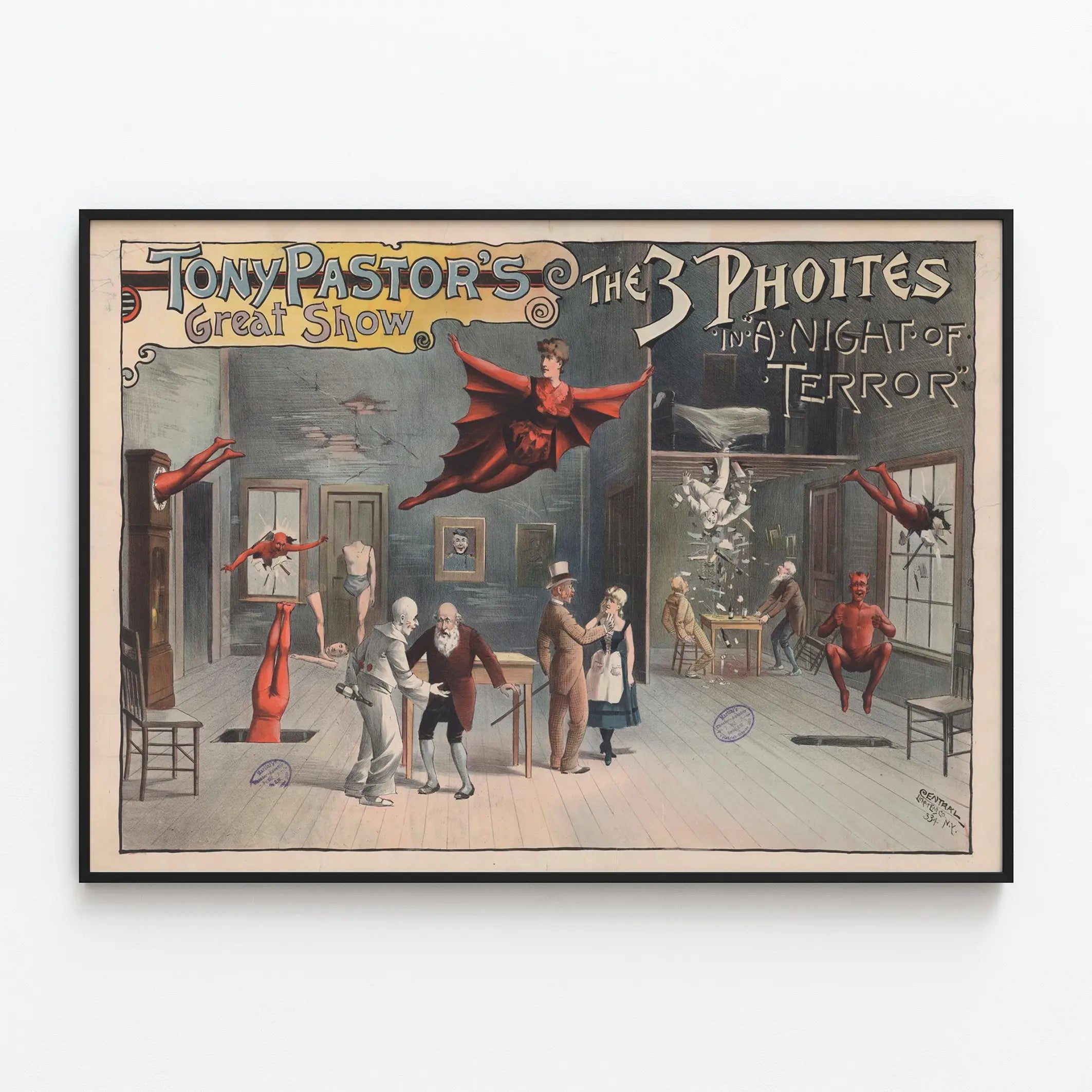 Vintageposter Tony Pastor's Great Show - The 3 Phoites in a Night of Terror