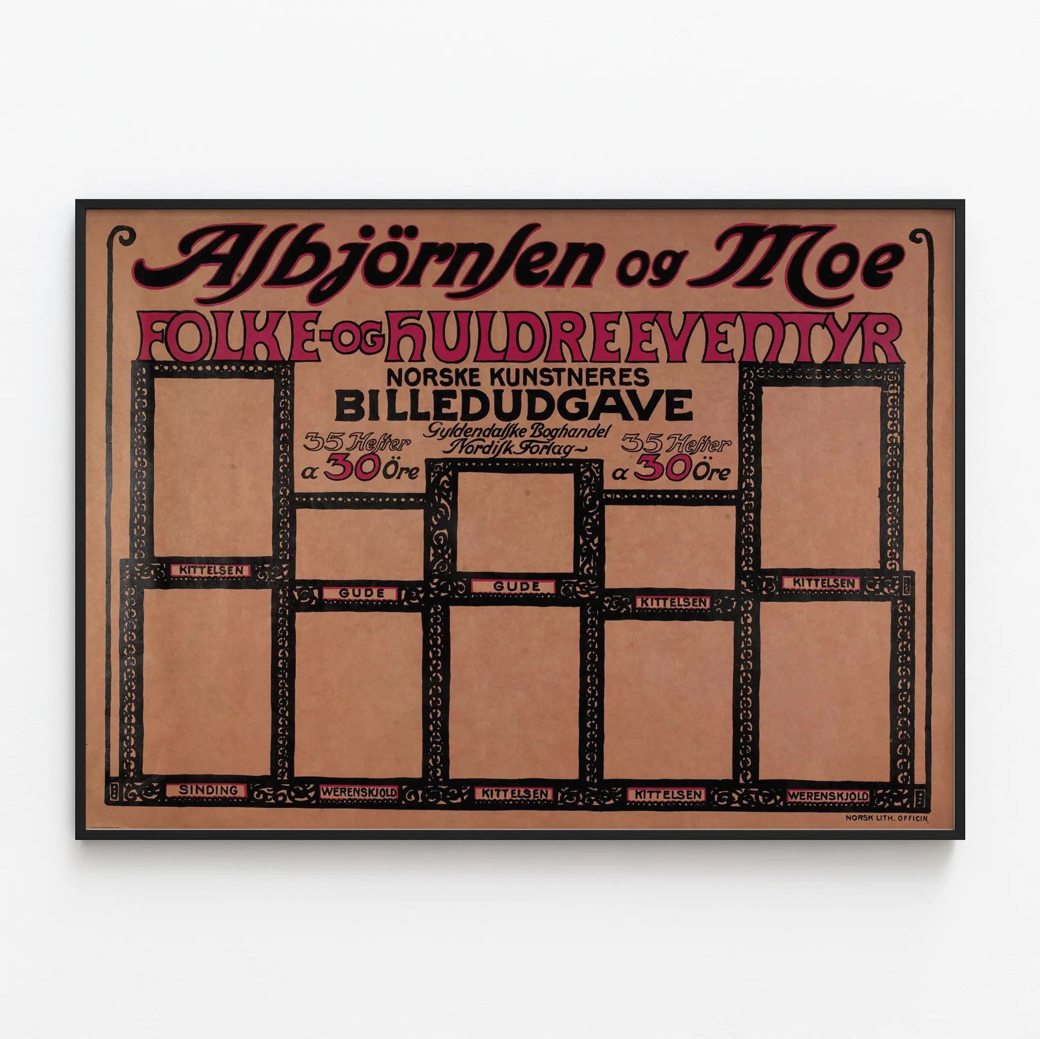 Vintage norsk affisch av Asbjörnsen og Moe Folk og Huldreeventyr