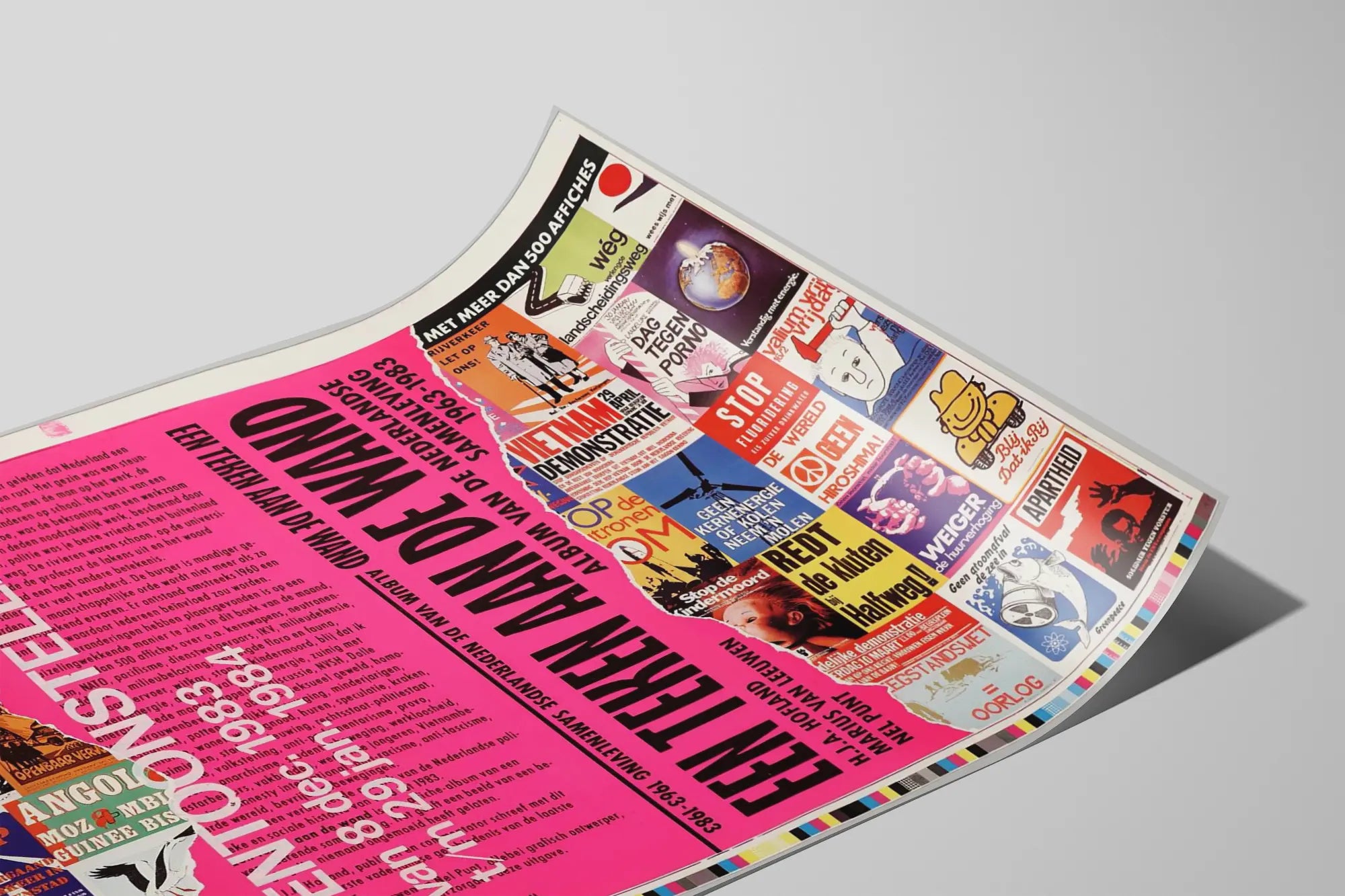 Den här vintageaffischen med titeln « Een Teken aan de Wand » är ett unikt väggdekorationselement som fångar den protesterande andan och de sociala striderna i Nederländerna mellan 1963 och 1983. Med en design fylld av många små färgglada och symboliska affischer ger den en rik och detaljerad inblick i den politiska och sociala protesten under denna tid. Denna affisch är perfekt för historieälskare, kulturintresserade och för den som vill tillföra en retro och engagerad touch till sitt hem.
