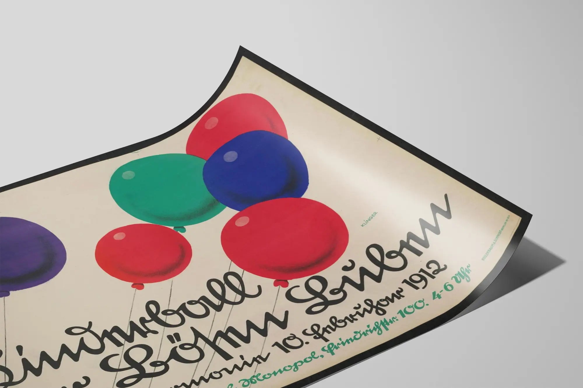 Vintageposter av Kinderball 1912 med färgglada ballonger