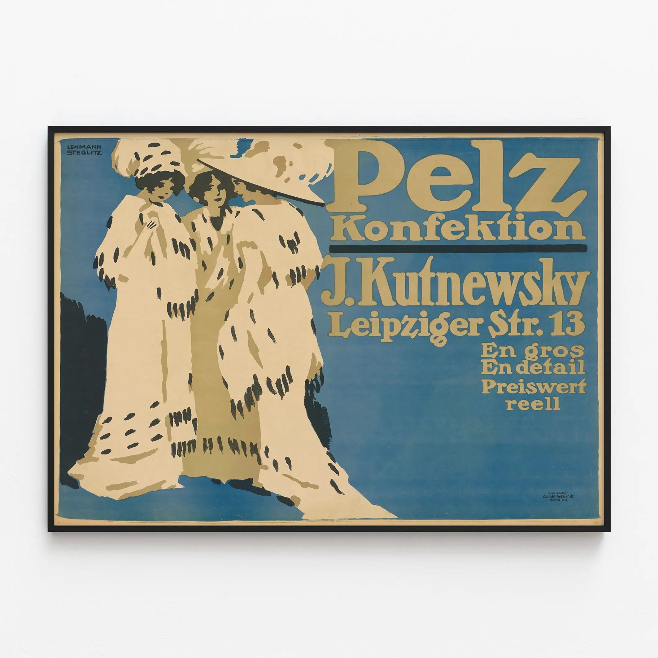 Vintageposter Pelz Konfektion J. Kutnewsky för väggdekoration