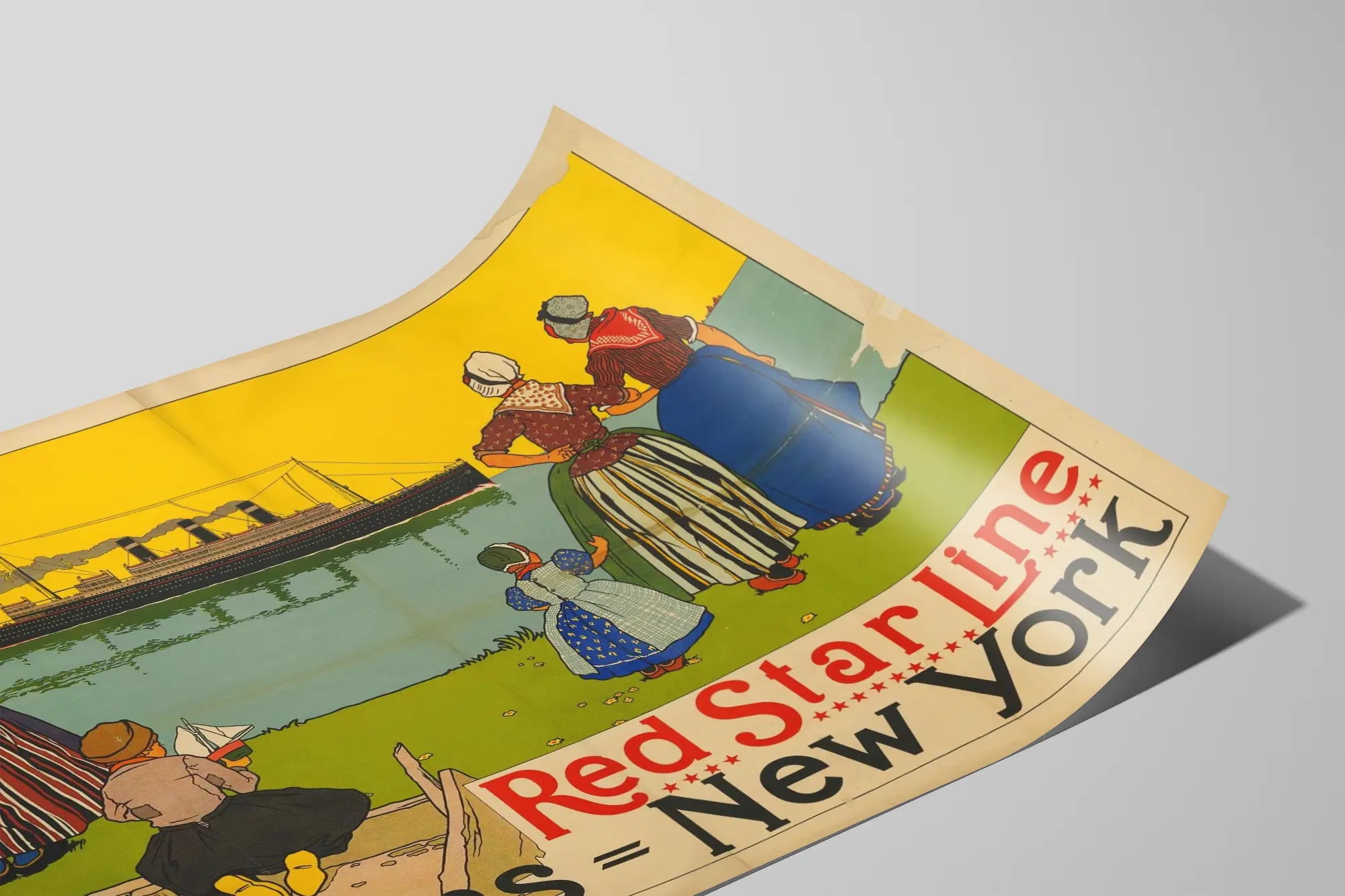 Vintageaffisch Red Star Line Antwerpen New York - Väggdekoration Poster
