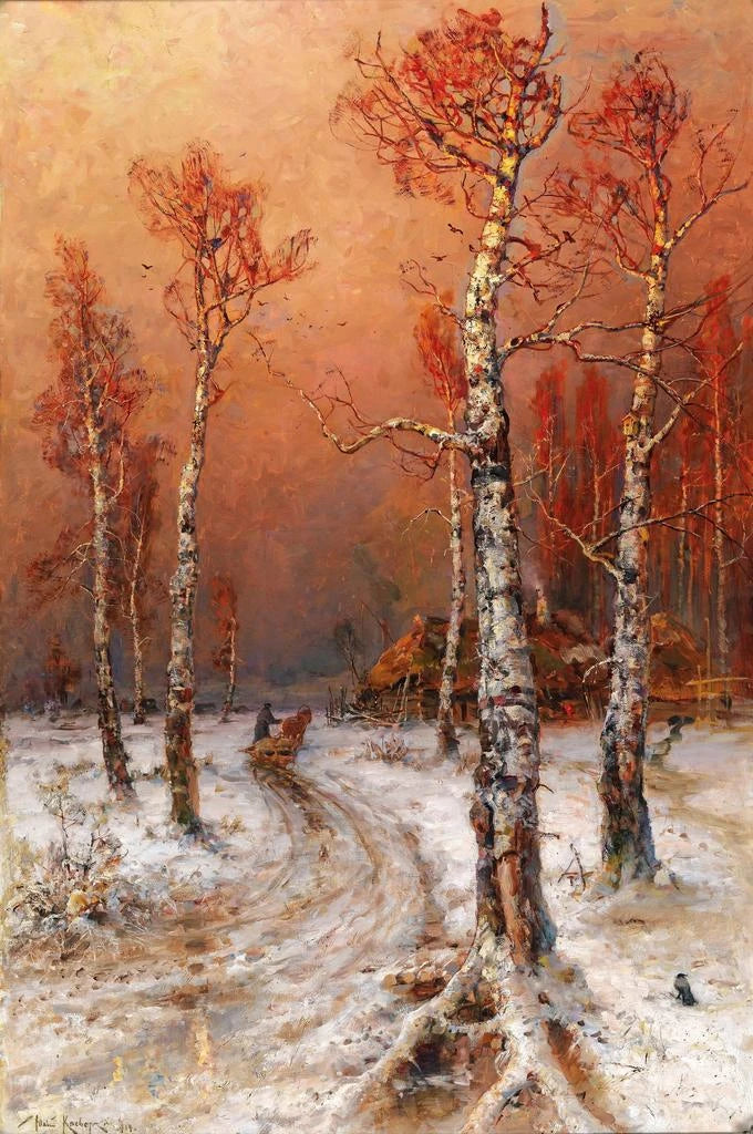 Konsttryck | Vinteratmosfär med kråkor - Julius Sergius Klever