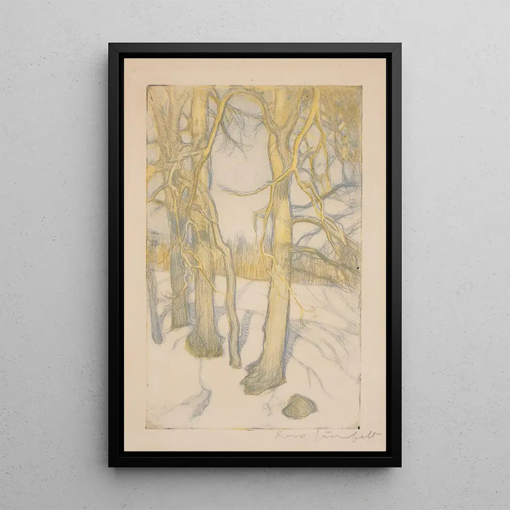 Eero Järnefelt, född 1863, är erkänd som en av de stora mästarna inom finsk konst, särskilt för sina landskap. Påverkad av den europeiska konstnärsrörelsen utvecklade han en unik stil som lyfter fram skönheten i de nordiska landskapen. Hans verk är ett exempel på en period av övergång, där finsk konst börjar forma en egen identitet. Järnefelt var en nyckelfigur i att främja den finska naturen, och "Talvisia puita" är ett perfekt exempel som illustrerar hans engagemang för en autentisk skildring av sitt land.