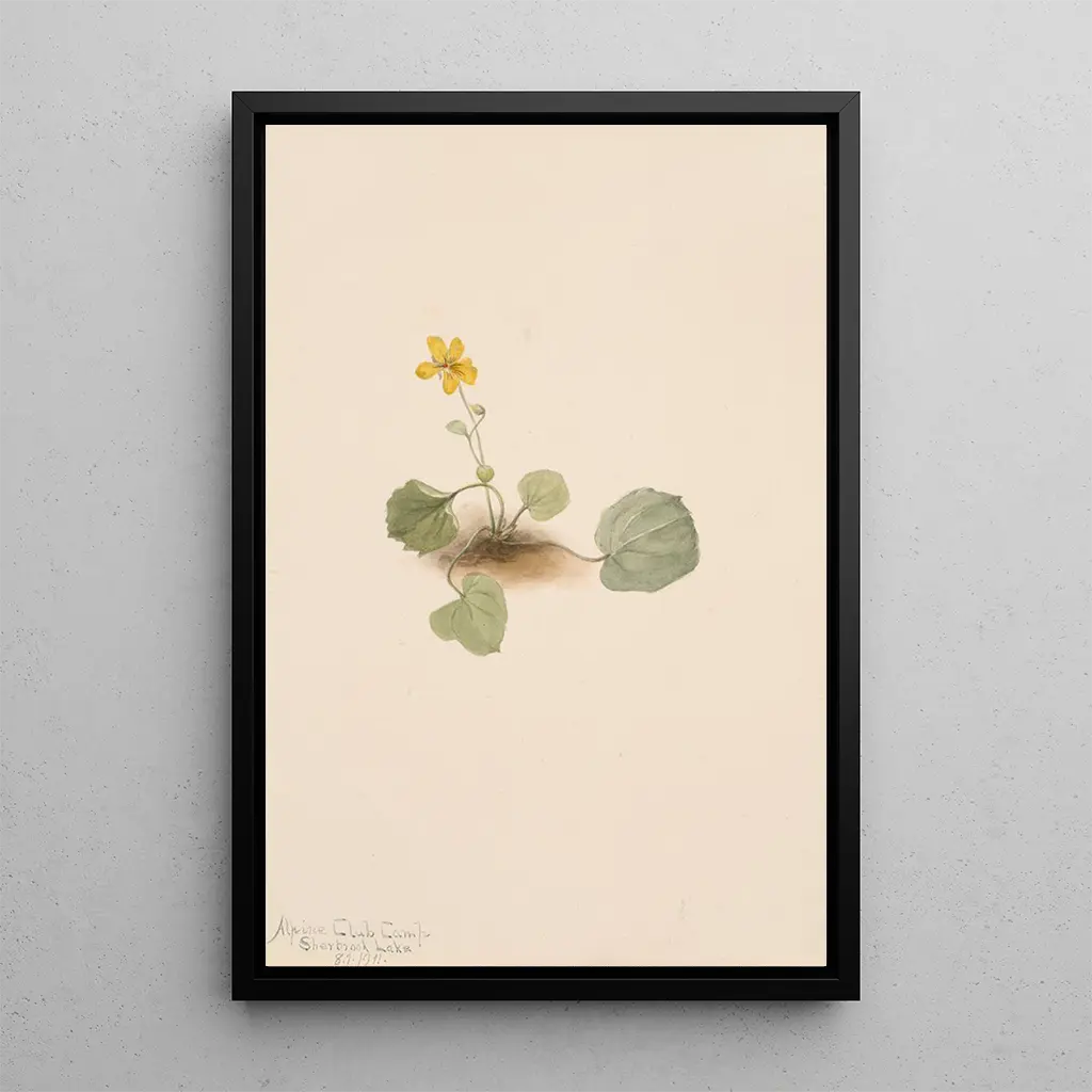 Den konsttryck av Violette orbiculaire, även känd som Viola orbiculata, fångar själva essensen av naturen med sina mjuka nyanser och rundade former. Nyansen av lila och vitt blandas med grace, vilket skapar en lugnande och kontemplativ atmosfär. Konstnären Mary Vaux Walcott, genom sin noggranna teknik, lyckas förmedla denna blommas skörhet och flyktiga skönhet. Varje kronblad tycks vibrera under ljuset och inbjuder betraktaren till en visuell utforskning som väcker minnen av ängar och skogar där dessa violer blommar.