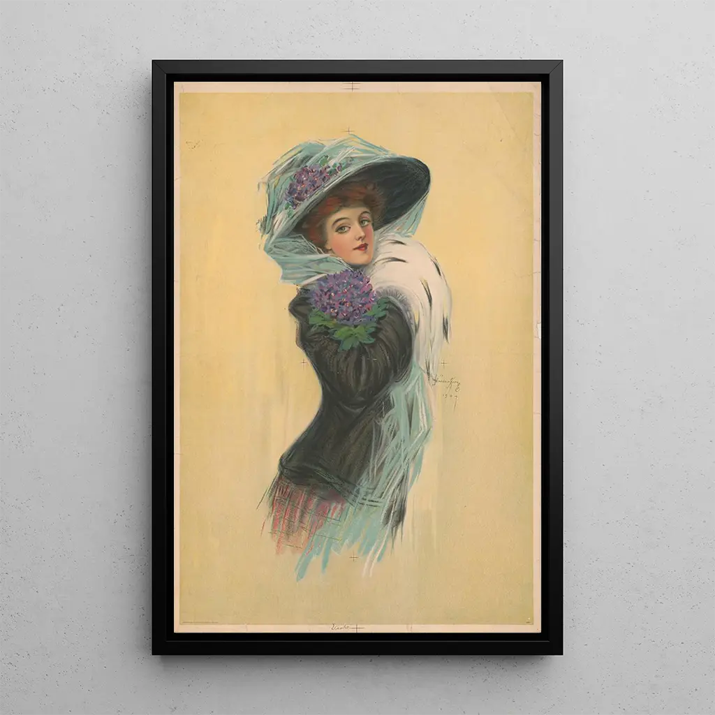 Hamilton King, verksam i början av 1900-talet, utmärkte sig genom sin unika porträttstil. Påverkad av Art Nouveau kännetecknas hans stil av organiska former och livfulla färger. King ägnade sin karriär åt att fånga essensen av sina motiv, med särskilt fokus på kvinnlig skönhet. Hans verk har visats och uppskattats i stor utsträckning, vilket bidrog till att utveckla det moderna porträttet. "Violet" illustrerar perfekt hans talang och engagemang för en konstnärlig framställning som förenar tradition och modernitet, samtidigt som den hyllar kvinnlighet.