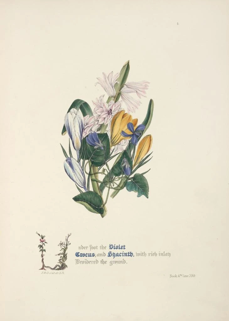 Målning Violett krokus och hyacint - Jane Elizabeth Giraud | Konsttryck