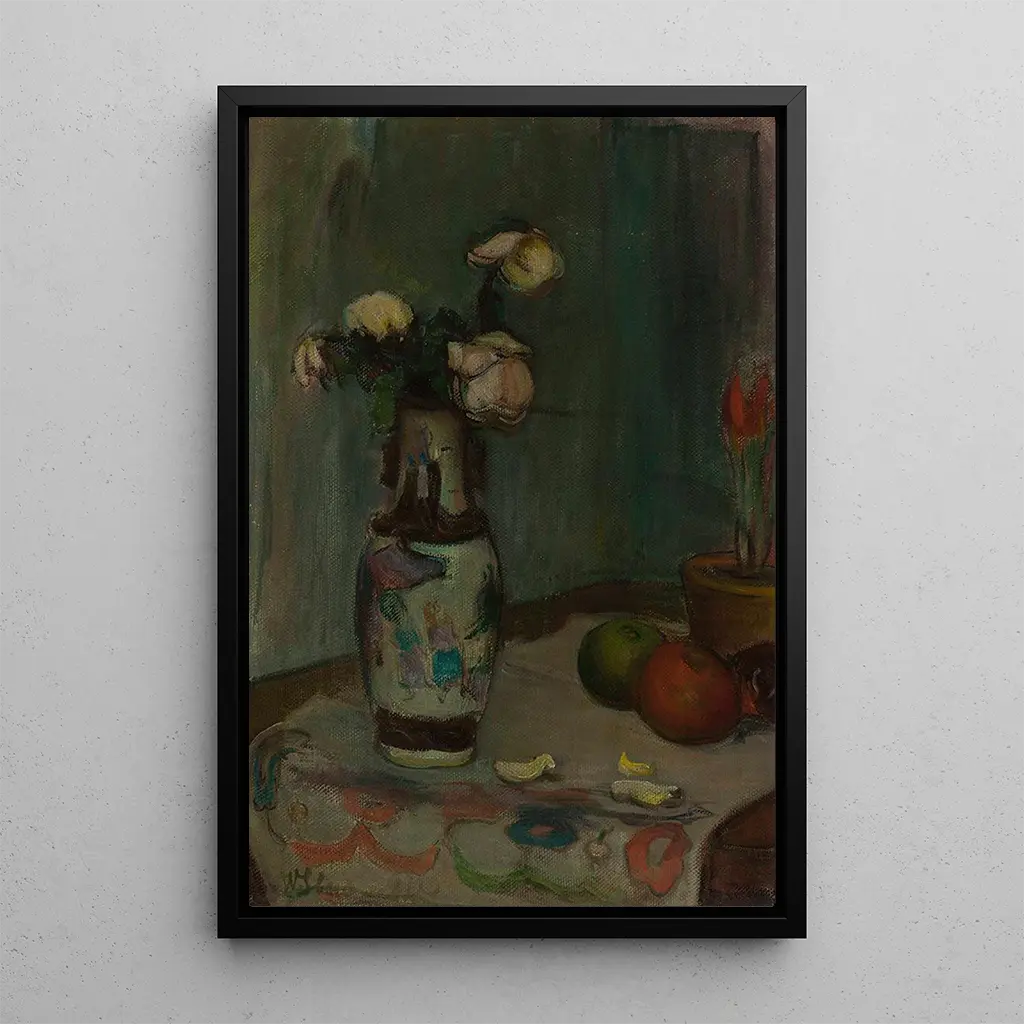 Dans cette œuvre délicate, Władysław Ślewiński nous offre une composition harmonieuse où les roses blanches s’épanouissent dans un vase élégant. Les pétales, d’un blanc éclatant, contrastent avec les nuances douces de l’arrière-plan, créant une atmosphère sereine et apaisante. La technique de peinture à l’huile permet de capturer la texture veloutée des fleurs, tandis que la lumière joue subtilement sur les surfaces, accentuant la beauté éphémère de la nature. Chaque détail, soigneusement travaillé, invite le spectateur à une contemplation silencieuse, révélant la profondeur des émotions que la nature peut susciter.