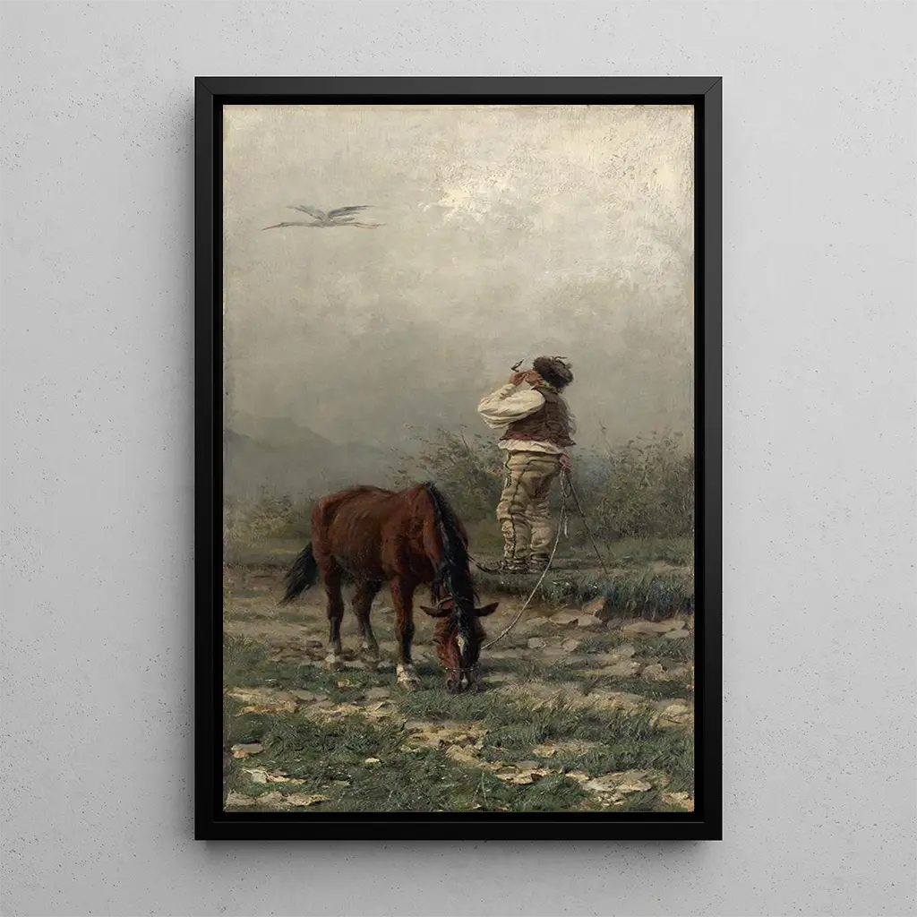 "Vol" av Jaroslav Věšín är ett konsttryck som väcker känslan av lätthet och frihet, och fångar det flyktiga ögonblicket av en flygning. Canvastavlan, rik på livfulla färger och dynamiska rörelser, förflyttar betraktaren till en värld där himmel och jord möts. De flytande formerna och de strålande nyanserna skapar en känsla av rörelse, som om figurerna förbereder sig för att lämna marken för att nå himlen. Detta konsttryck är en verklig inbjudan till flykt, att drömma om fjärran horisonter och nya äventyr.