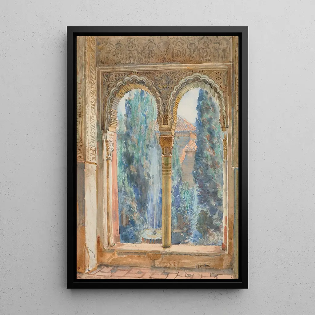 I "Vue d'une cour" fångar Francis Luis Mora essensen av ett lugnt ögonblick, där det mjuka solljuset leker på väggarna och kullerstenen. De varma och jordnära färgerna framkallar en välkomnande atmosfär, medan de noggranna detaljerna av karaktärerna och objekten tillför en känsla av realism. Kompositionen, balanserad och harmonisk, inbjuder betraktaren att fördjupa sig i denna intima scen, där varje element verkar berätta en historia. Användningen av ljus och skugga skapar en djup som drar ögat och uppmuntrar till reflektion över livet som blomstrar i detta utrymme.