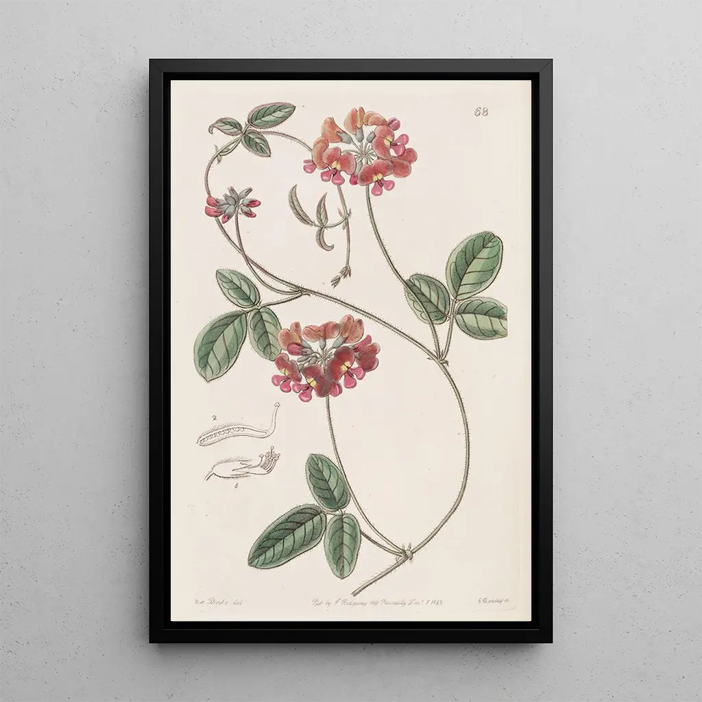 Konsttrycket av Zichya velue, ett verk av Sydenham Edwards, fördjupar oss i en rik och livfull botanisk värld. Nyanser av grönt, från det mjukaste till det djupaste, blandas harmoniskt för att skapa en lugnande atmosfär. Akvarelltekniken, använd med fin precision, fångar bladens delikatahet och den sammetslena texturen hos denna växt. Varje detalj är noggrant återgiven, inbjudande till en noggrann betraktelse av naturens skönhet. Verket framkallar en känsla av frid, som om man befinner sig i hjärtat av en frodig trädgård, där naturen blomstrar i all sin prakt.